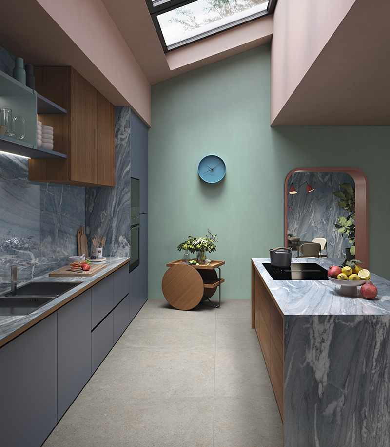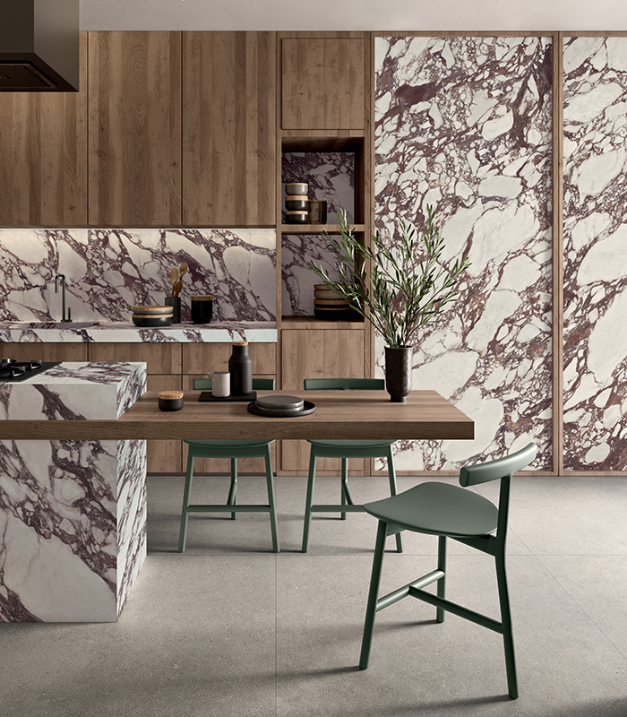 Von Steinoptiken über die Wärme von Holz, von der Eleganz des Marmors bis zum Minimalismus von Beton, bis hin zur gestalterischen Kraft der Farbe, ermöglichen die Kollektionen von Lea Ceramiche die Gestaltung zeitgenössischer Küchen mit klarer Identität. Oberflächen für keramische Küchenarbeitsplatten, Rückwände, Inseln, durchgehende Wandverkleidungen und Stauraumvolumen, im harmonischen Dialog mit Böden und Wänden, für ein funktionales und stimmiges Gesamtsystem.