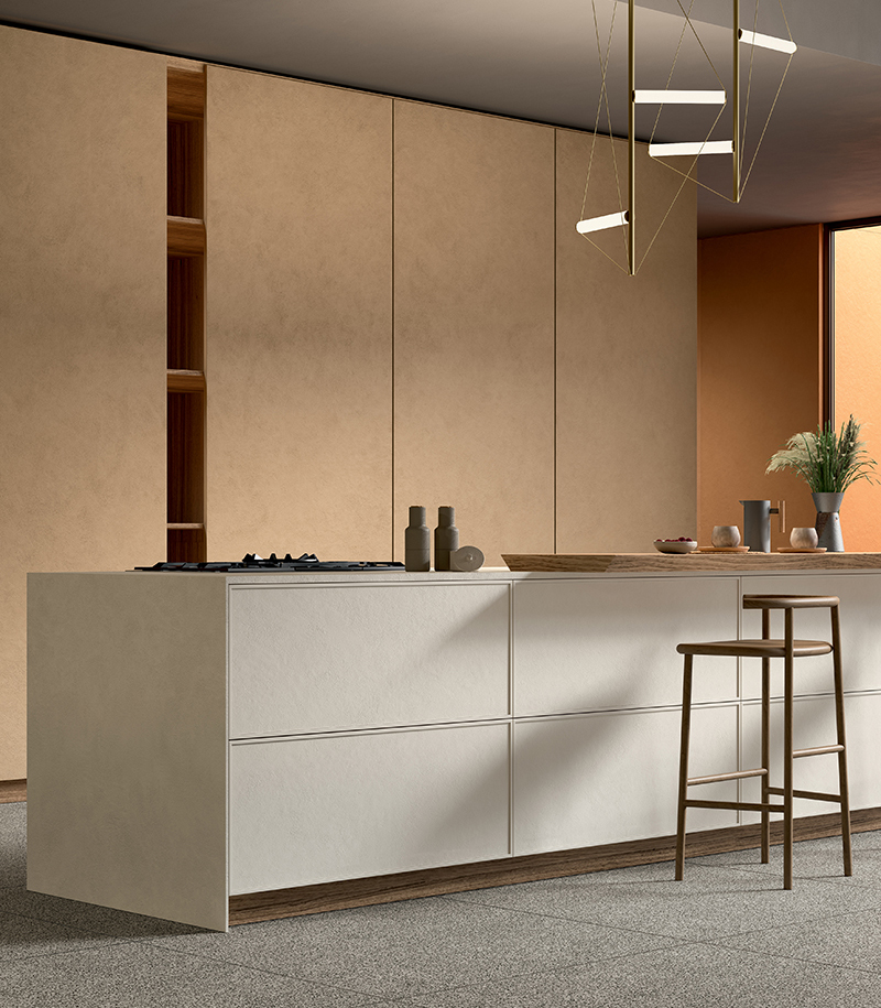 Aus dieser Vision entsteht das Konzept der Designküche von Lea Ceramiche, in dem keramische Oberflächen für die Küche zu einem aktiven Bestandteil des architektonischen Projekts werden. Ein Ansatz, der materialbezogene Forschung, modernste Technologien und exzellentes Design vereint und Keramik in ein fortschrittliches Planungsinstrument verwandelt, das kohärente, widerstandsfähige und identitätsstarke Räume formt.