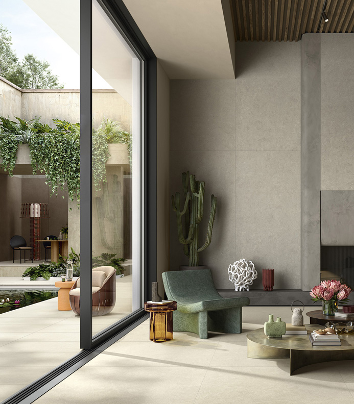 Vorgestellt als Preview auf der Cersaie 2025, verkörpert Pulse vollständig das Konzept des outdoor unbound: ein Material, das entwickelt wurde, um die Grenzen zwischen Innen- und Außenbereich zu überwinden und das Projekt in all seinen Ausprägungen zu begleiten. Ein neuartiger, zeitgenössischer und dynamischer Stein, der Kontinuität und gestalterische Freiheit schafft und die Art und Weise, Räume zu erleben, neu definiert.