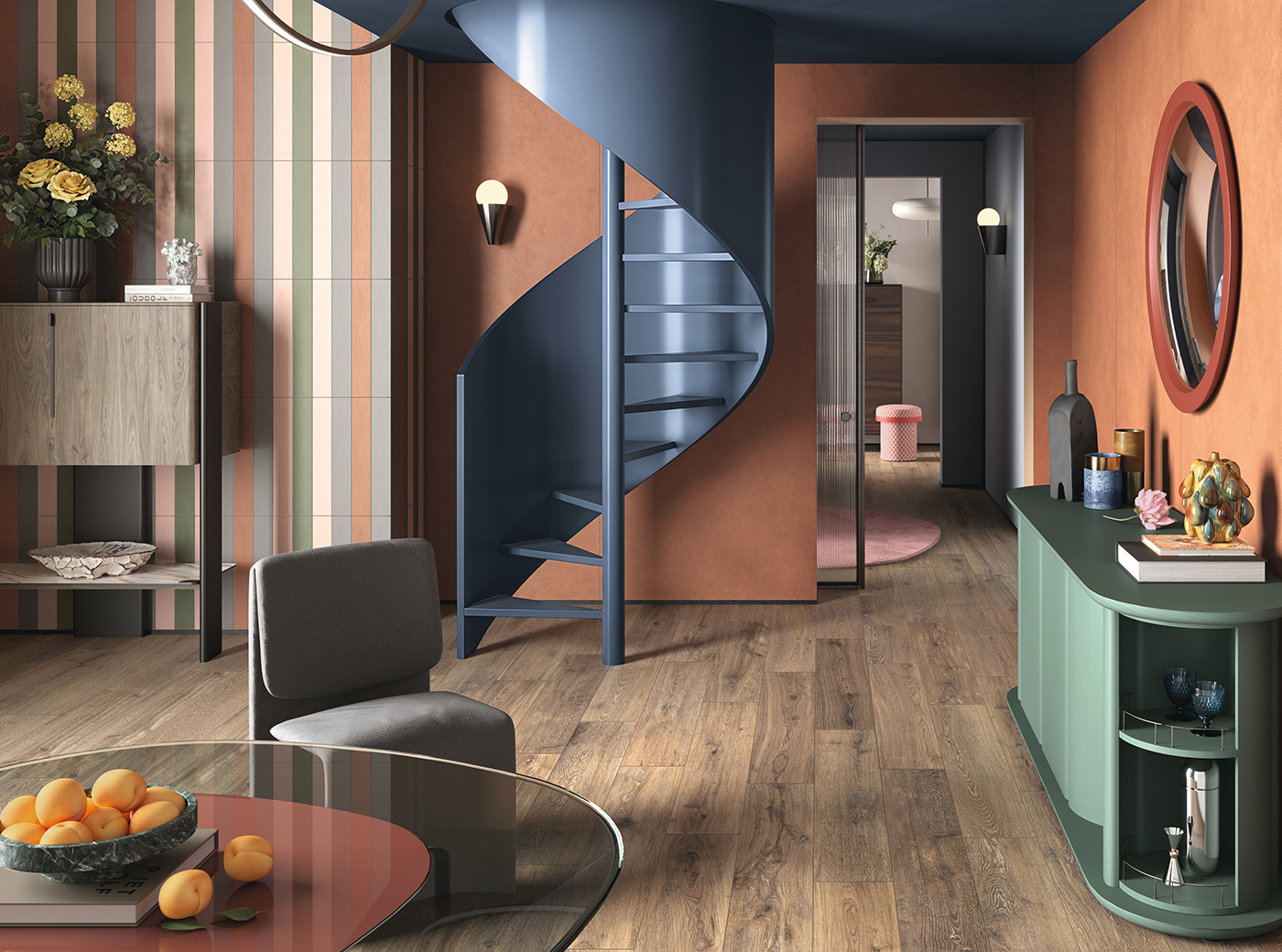 Die Farbpalette von Pigmenti lässt sich leicht mit natürlichen Materialien und dem gesamten System der Kollektionen von Lea Ceramiche kombinieren, was sie zu einer idealen Lösung für zeitgenössische Umgebungen macht, die volle und kohärente Töne erfordern.
