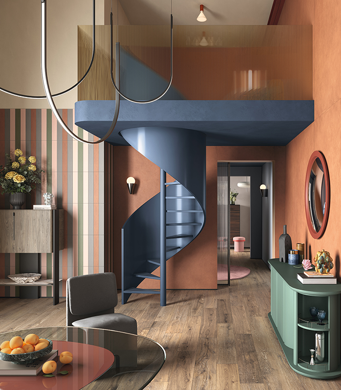 Die im Jahr 2025 entstandenen – und sich 2026 weiter verstärkenden – Entwurfsrichtungen zeigen ein wachsendes Interesse an Räumen, die als visuelle Landschaften konzipiert sind. In diesen Umgebungen spielt die Materie eine grundlegende Rolle: Die Kombination aus geschichteten Oberflächen, Tonvariationen und abgestimmter Tiefe schafft eine präzise, lesbare und zeitgenössische Identität.
