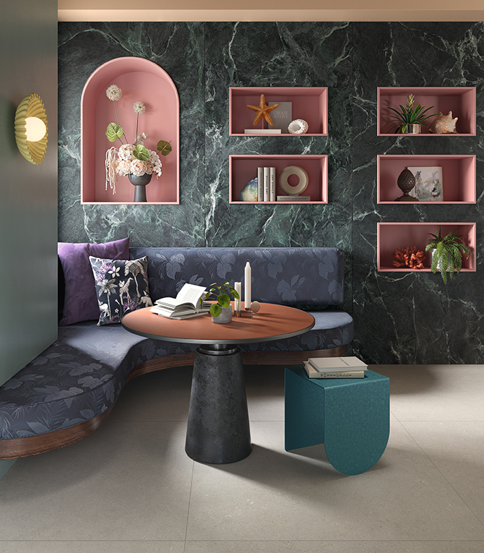 Ein Material, das fähig ist, kohärente Atmosphären, zeitgenössische Landschaften und Kompositionen zu schaffen, die durch ein materielles Gleichgewicht geprägt sind, das widerspiegelt, wie wir Innenräume heute leben.