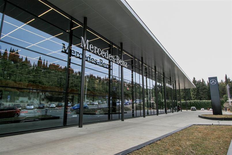 Unter den Projekten, bei denen Slimtech kürzlich für die Verkleidung der Oberflächen ausgewählt wurde, verdient der Mercedes-Vertragshändler in Tiflis (Georgien) besondere Aufmerksamkeit. Die großen Platten der Kollektion Absolute von Lea Ceramiche verbinden Ästhetik mit Funktionalität: die intensiv schwarze Farbe Total Black im matten Finish verleiht dem Raum Eleganz und Raffinesse; in der Stärke 5,5mm wird das laminierte Steinzeug den Ansprüchen in Sachen Funktionalität und Leistung auch dank der Verstärkung aus Glasfasernetz bestens gerecht.