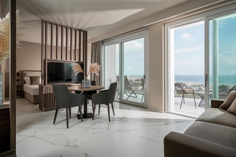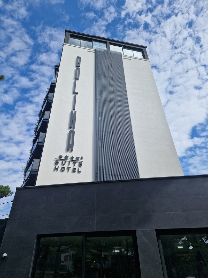 Fließende Linien, geschwungene Balkone und große Glasflächen formen eine Architektur aus Voll- und Leerräumen, in der Materialität und Transparenz in einem feinen Gleichgewicht aufeinandertreffen. Das Gebäude erstreckt sich über neun Etagen und beherbergt 37 Zimmer und vier Suiten, mit einer Panorama-Spa an der Spitze, die einen 360°-Blick auf den Horizont eröffnet, wo Licht zu Materie wird und Räume für Gleichgewicht, Wohlbefinden und Stille schafft.