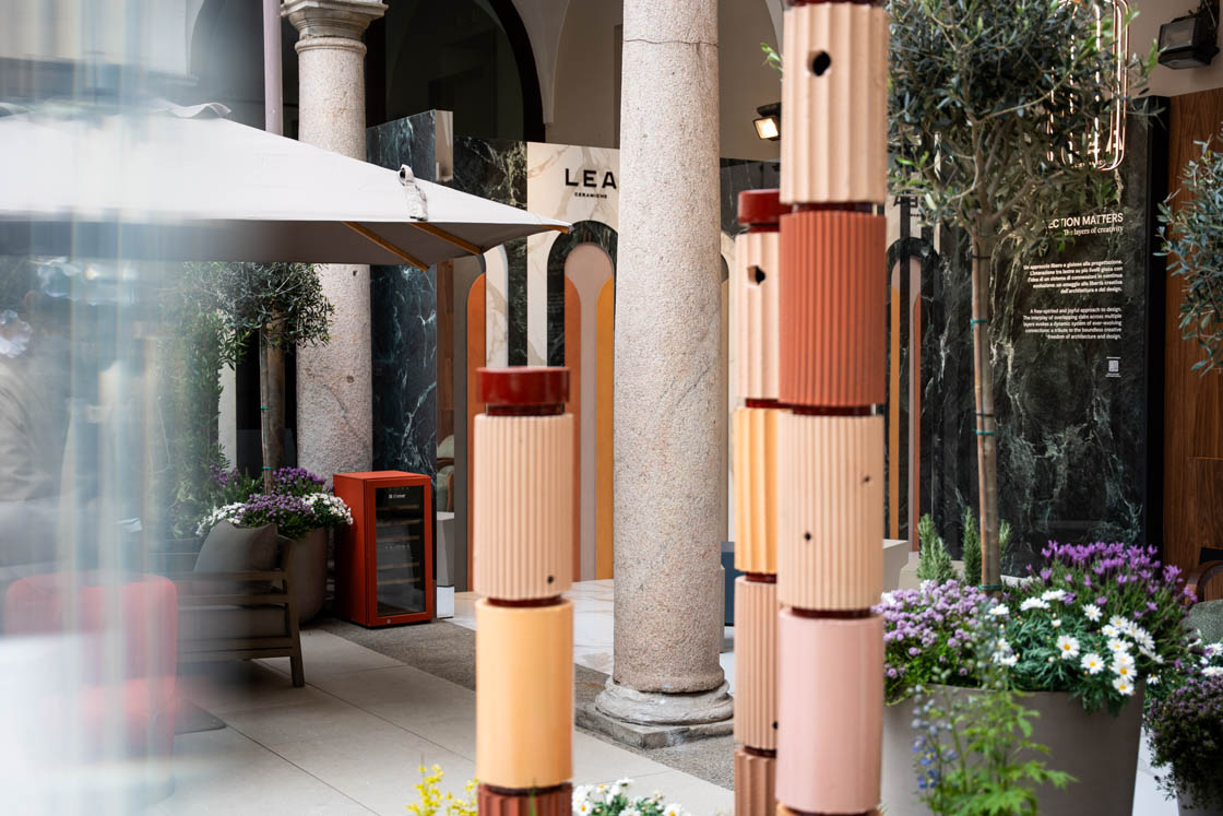 Als ein kreatives Open-Air-Labor konzipiert, ermutigte die Installation Besucher dazu, unerwartete Kombinationen zu entdecken, die Ausdruckskraft des Nebeneinanders zu erkunden und über physische wie visuelle Schichtung als zeitgenössische Gestaltsprache zu reflektieren. Die fließende Komposition aus Keramikbögen, mehrschichtigen Oberflächen und dynamischen Lichteffekten formte ein immersives System, in dem jedes Detail Farbnuancen, Tiefenwirkung, Technologie und Verbindung betonte. Ein visuelles Ökosystem im ständigen Wandel, das die Vielseitigkeit der Lea-Materialien und ihre aktive Rolle im architektonischen Storytelling erlebbar macht.