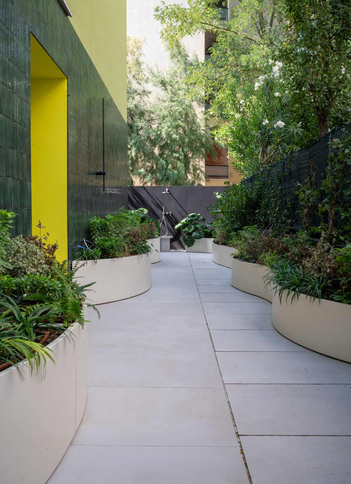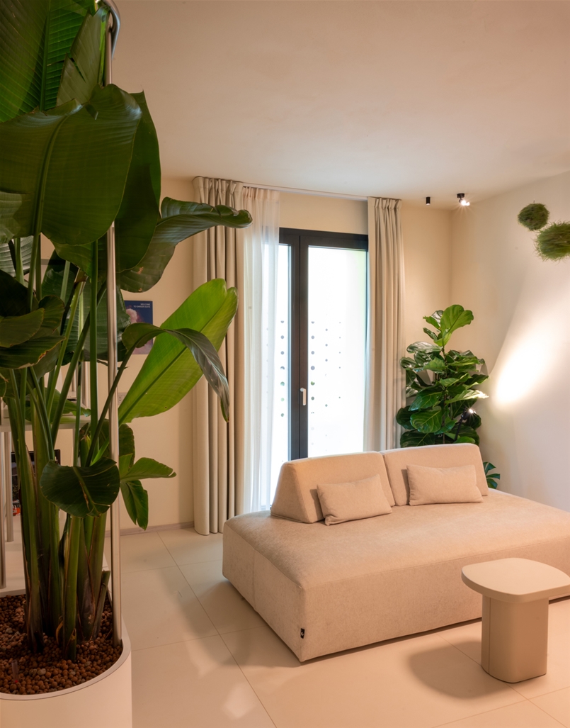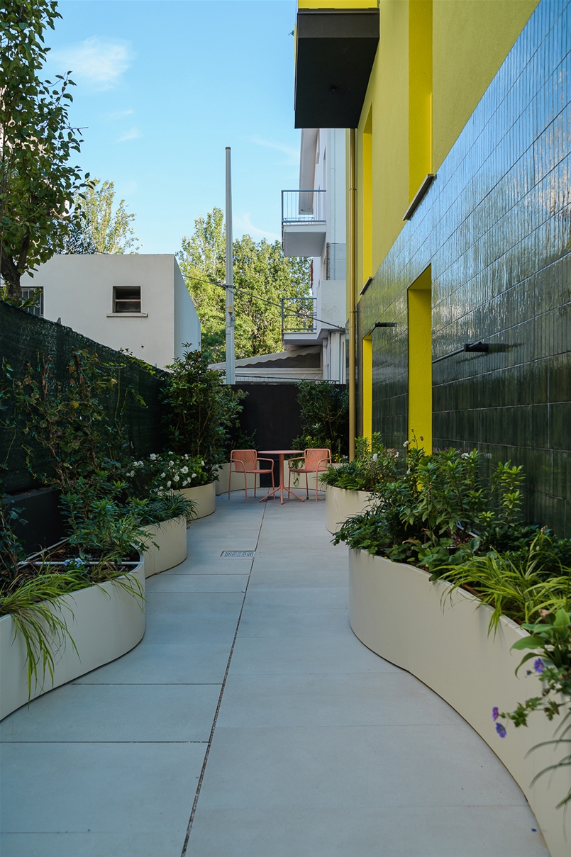 Das Projekt folgt den Prinzipien des Biophilic Design und integriert natürliche Farbtöne, fließende Formen und eine szenografische Bepflanzung, um eine authentische Beziehung zur natürlichen Umgebung wiederherzustellen. In diesem Gleichgewicht kommt den Oberflächen von Lea Ceramiche eine entscheidende Rolle zu: Sie werden zum materiellen Leitfaden, der Innen- und Außenraum verbindet und dabei ästhetische Kontinuität, Langlebigkeit sowie eine verfeinerte räumliche Identität gewährleistet.