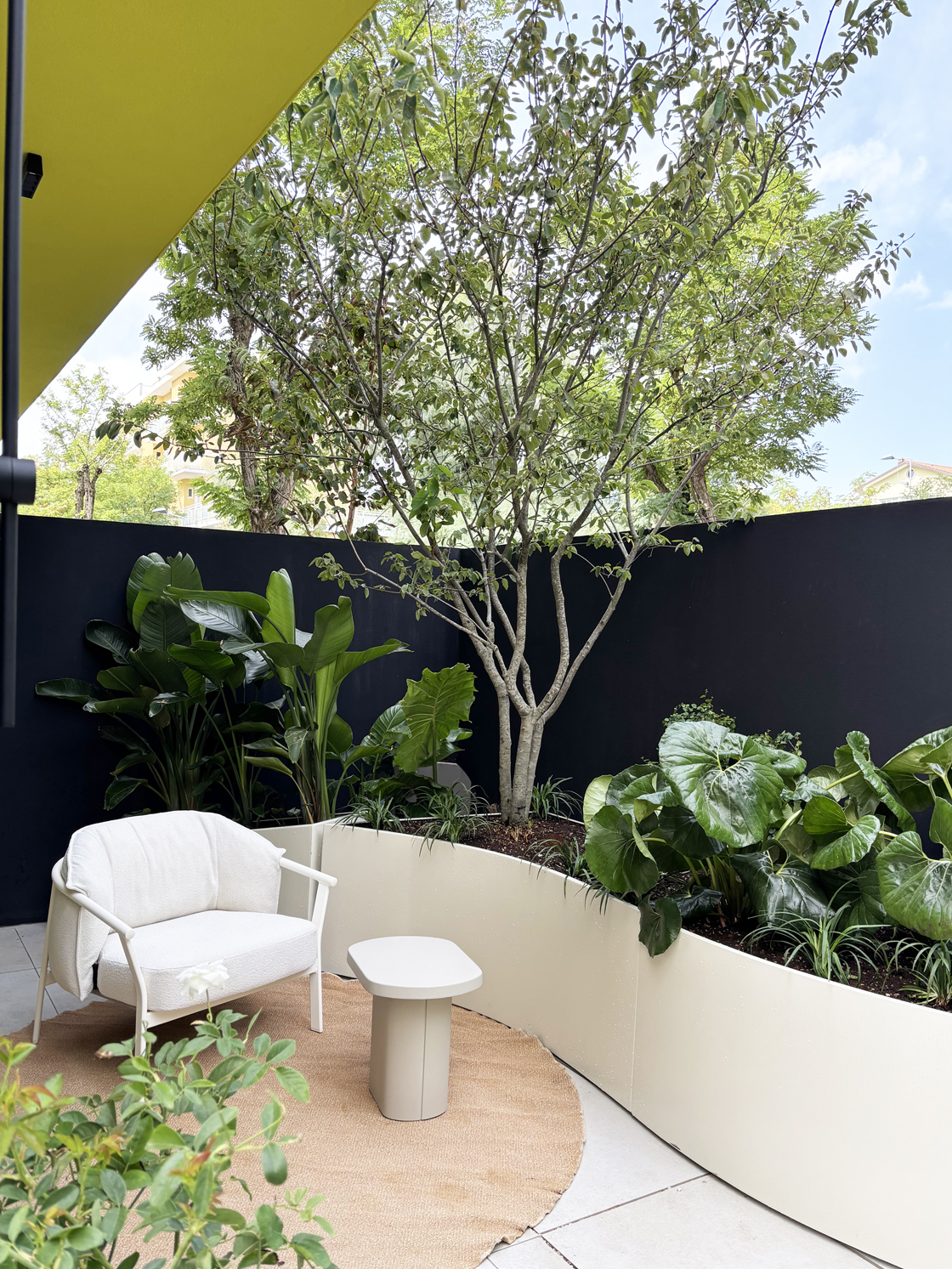 Das prägende Element des Projekts ist die Bepflanzung, die von ROBERTA STUDIO sorgfältig ausgewählt wurde, um die Räume in ein lebendiges, saisonales Ökosystem zu verwandeln: Schattenpflanzen, Tillandsien und essbare Arten bilden natürliche Szenerien, die sich im Laufe der Zeit wandeln. Das Zusammenspiel von Licht, Grün und Lea Ceramiche Oberflächen erzeugt ein vielschichtiges Sinneserlebnis, in dem Keramik nicht bloßes Material ist, sondern integraler Bestandteil der häuslichen Landschaft.
