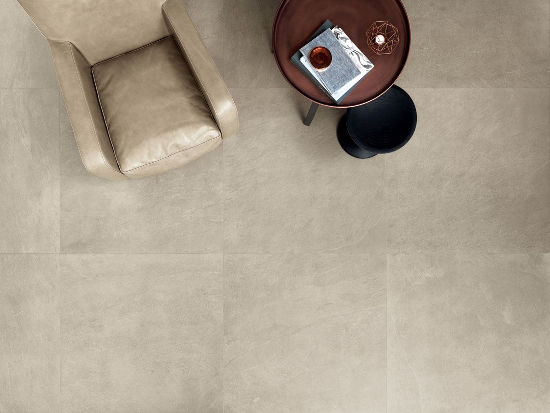Über die Nachbildung der changierenden Effekte an der Oberfläche des Steinzeugs, die typisch für sedimentäre felsige Steine sind, hält Waterfall Texturen, Unregelmäßigkeiten und Farbveränderungen, punktgenaue Ausdrucksformen für das Vergehen der Zeit, fest. Die grauen Basistöne erinnern an den natürlichen Oxidationsprozess des Steins, eines Materials in kontinuierlichem Wandel, das Farbe, Form und Struktur verändert und sich an die Entwicklung der Naturphänomene anpasst. Mit der Integration anderer Steintypen (z.B. brasilianische Quarzite) ist das Forschungslabor von Lea Ceramiche zu einer perfekten ästhetischen Definition, einer grafischen Harmonisierung gelangt, die dem Material Eleganz verleiht und mit der Veränderung des Lichts interagiert.