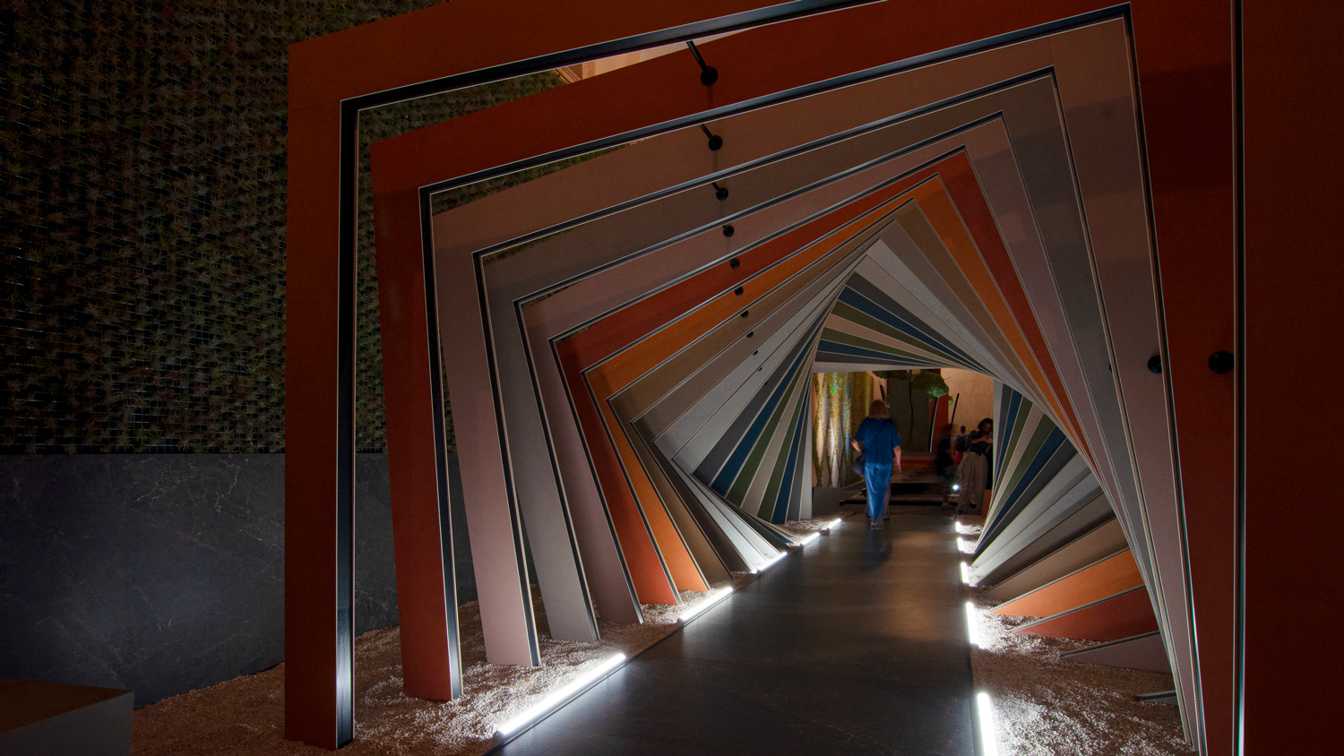 Zur optimalen Präsentation der ultradünnen, vielseitigen und beständigen Keramikplatten, dem Ergebnis einer Technologie, die das Produktionsverfahren revolutioniert hat und eine höchst nachhaltige Lösung darstellt, wurde anlässlich eines so wichtigen Events wie dem Landscape Festival eine Installation an den Arkaden der Stadtbibliothek Angelo Mai an der Piazza Vecchia aufgestellt. Das Projekt ist an der organischen Architektur inspiriert und fügt sich harmonisch in die Umgebung ein: Ein Tunnel von klar definierter und vibrierender Form regt zum Nachdenken über die Materie Keramik und ihr eigentliches Wesen an. Der Fokus liegt auf einem zentralen Ziel: der Nachhaltigkeit. Einige Riesenvasen aus Feinsteinzeug stellen Bauwerke und Häuser mit einem nachhaltigen „Herzen“ dar: aus den großen Gefäßen ragen Tillandsien hervor. Der Ort lädt zum Verweilen ein, zu einer Pause in einem angenehmen, nach Menschenmaß und umweltgerecht gestalteten Ambiente.