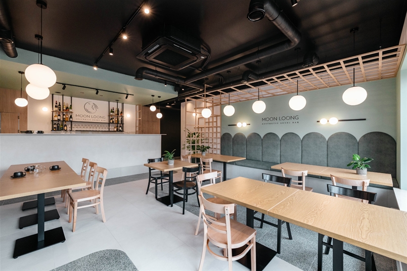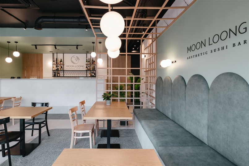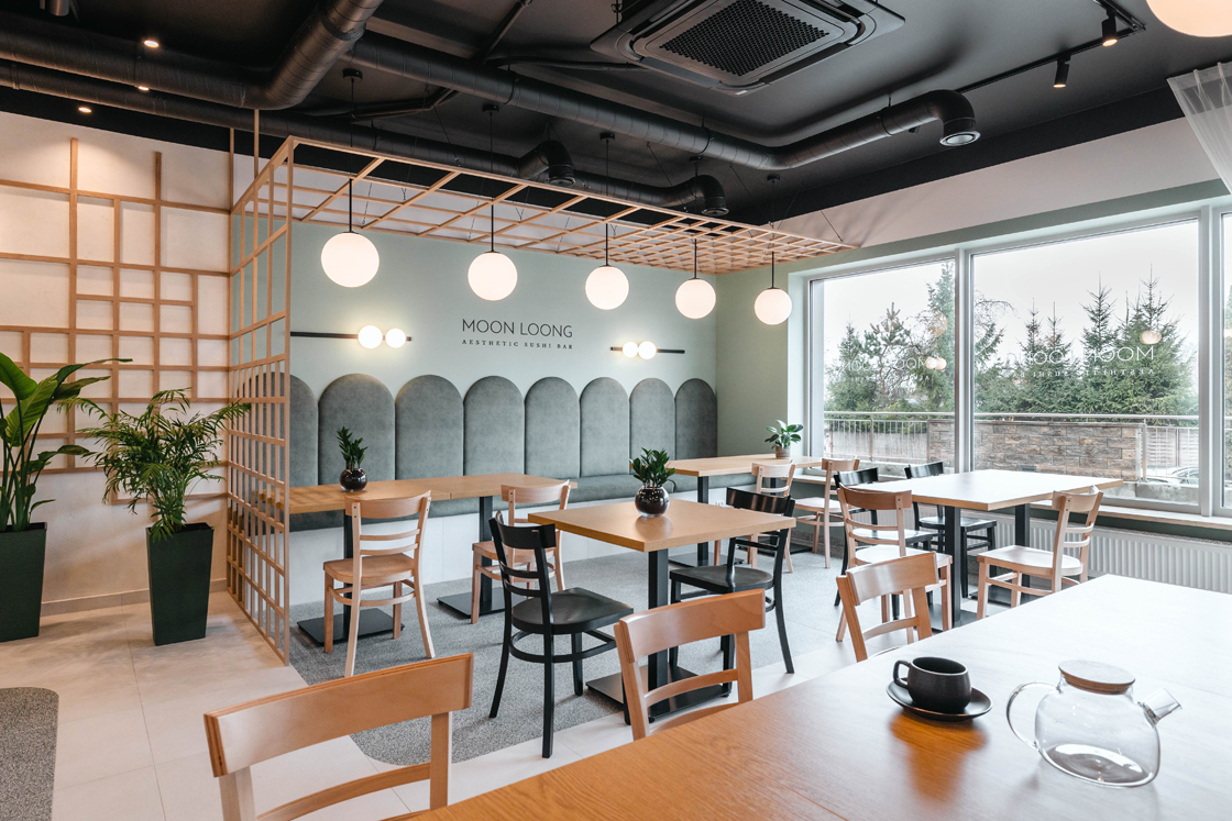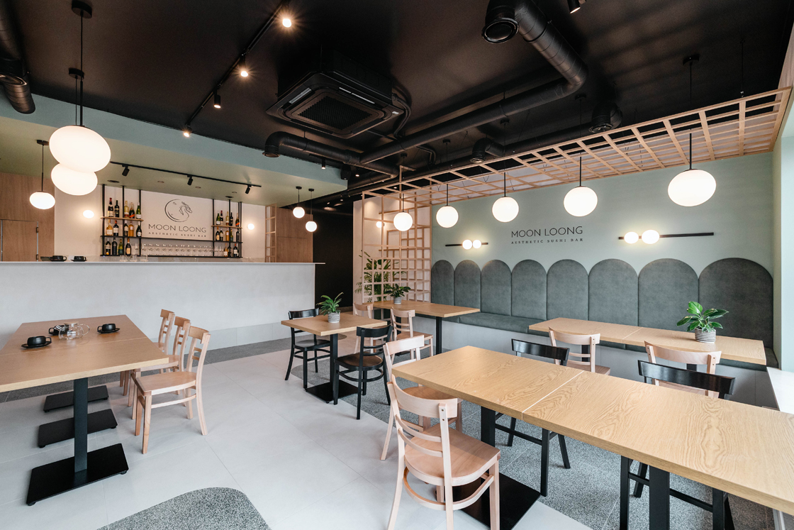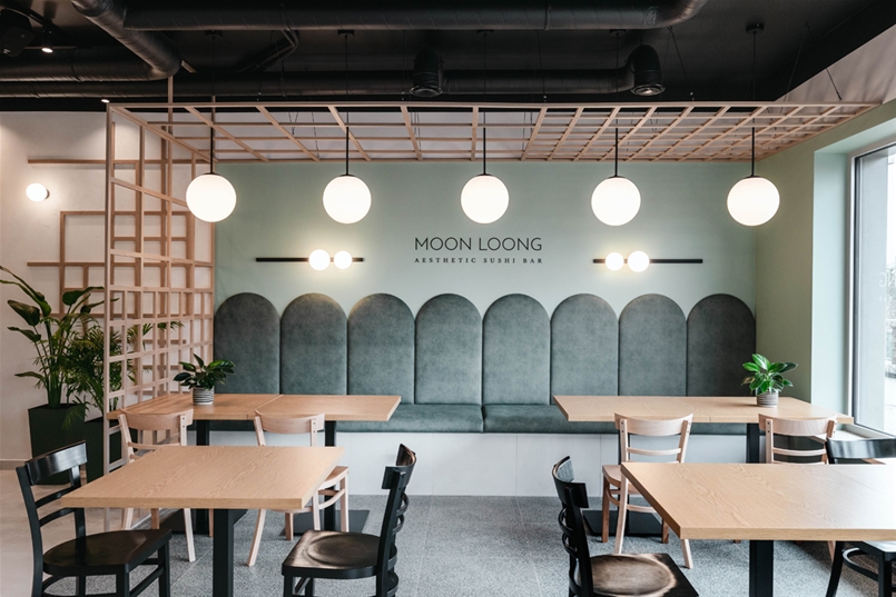Im Herzen von Białystok definiert das neue Moon Loong Sushi Bar, entworfen vom Studio BOHE Architektura von Anna Skowrońska, eine raffinierte und poetische Ästhetik, in der Licht und Materialien in vollkommenem Gleichgewicht miteinander dialogieren. Auf einer Fläche von 98 m² verbindet der Raum das helle Holz der Einrichtung mit sanften Tönen wie Mint, Grau und Beige sowie den kaum spürbaren Samtstoffen der großzügigen Sitzbänke und schafft so eine intime und einladende Atmosphäre, die darauf ausgelegt ist, die Kunst des Sushi durch Ruhe und Schlichtheit zu zelebrieren.