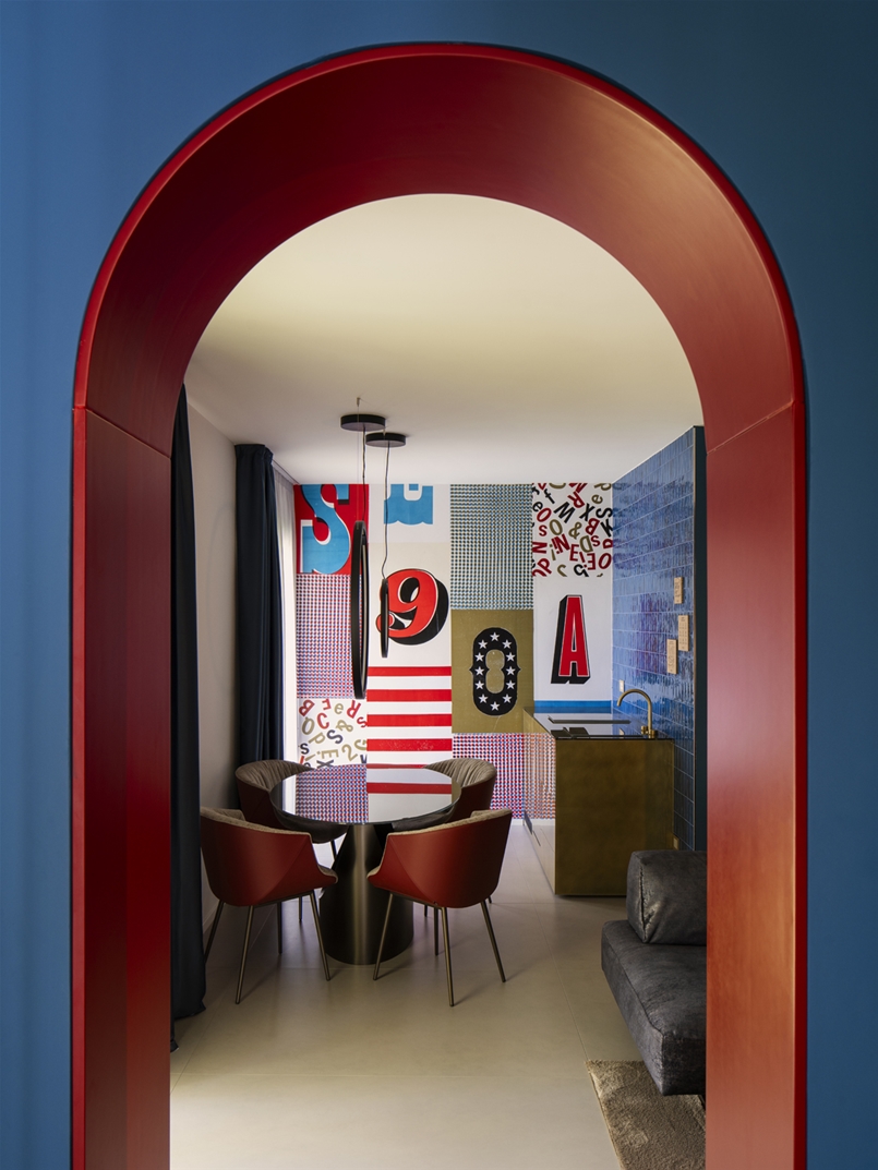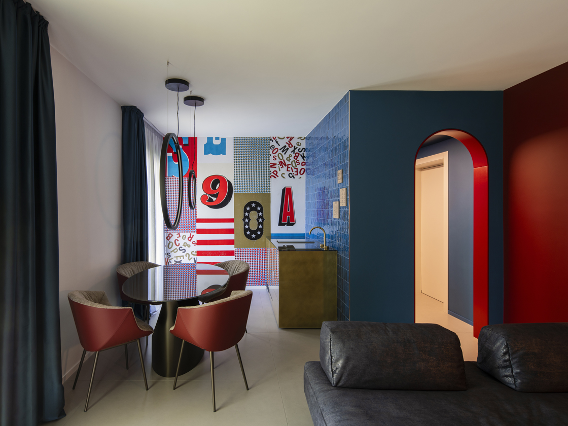 Das von Lombardini22 entworfene Projekt schafft eine Umgebung voller Farbe und Anspielungen, geprägt von ausgewogenen Kontrasten, weichem Licht und szenografischen Details.