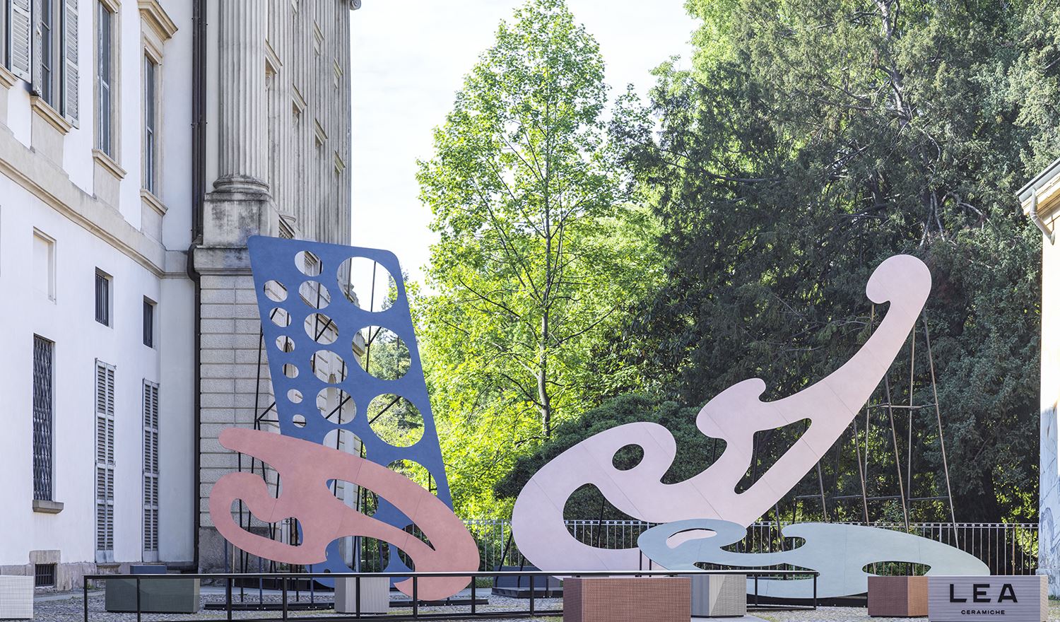 “Es gibt Gegenstände aus der nicht allzu fernen "analog" Ära, die immer noch die manuelle Fertigkeit einer bestimmten Art des Designs vermitteln können. "Tools and Space" feiert auf surrealistische Weise à la Savinio's "Games in the Forest" eine Zeit, in der Werkzeuge aus einer jüngeren Vergangenheit (Zirkel, Französischkurven oder Lineale) verwendet wurden, um Raum und Architektur zu zeichnen. Diese Installation und insbesondere die Pigmenti-Kollektion von Lea Ceramiche wird ebenfalls zu einem Ausdrucksmittel, um neue Formen und Volumina zu generieren, eine Art surrealistisches Denkmal eines idealen italienischen Platzes von De Chirico, der zwischen der neoklassizistischen Architektur des Palazzo Reale und der des PAC von Ignazio Gardella schwebt.”