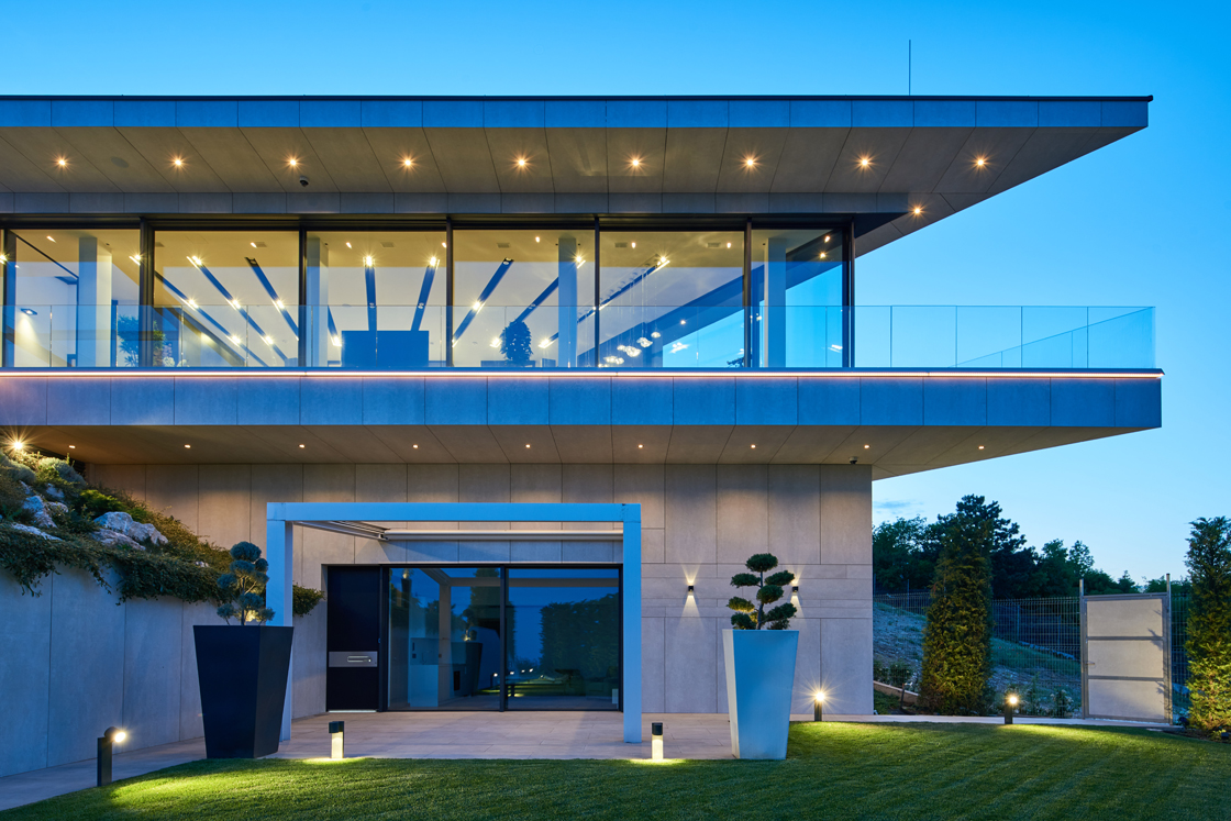 Eine spektakuläre Villa mit besonderer, manchmal durchdringender und entschlossener, in jedem Fall aber ultramoderner Morphologie, mitten im Grün des 12. Bezirks einer so eindrucksvollen Stadt wie Budapest. Die prächtige Residenz erstreckt sich über mehrere Stockwerke und besitzt eine weiße hinterlüftete Fassade, die einen lieblichen Kontrast zum Grün der Landschaft ringsherum bildet.