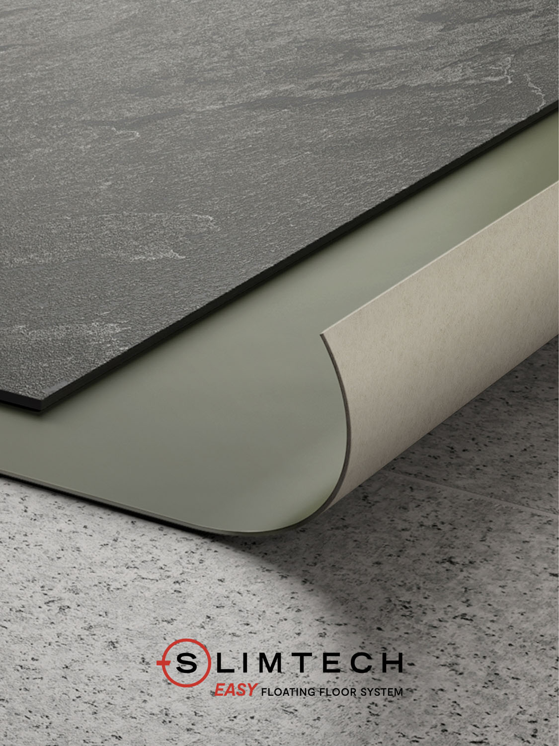 Das erste zertifizierte Trockenbau-Bodenverlegungssystem ohne Kleber mit Slimtech Plus, den besonders hochwertigen, dünnen Keramikplatten.